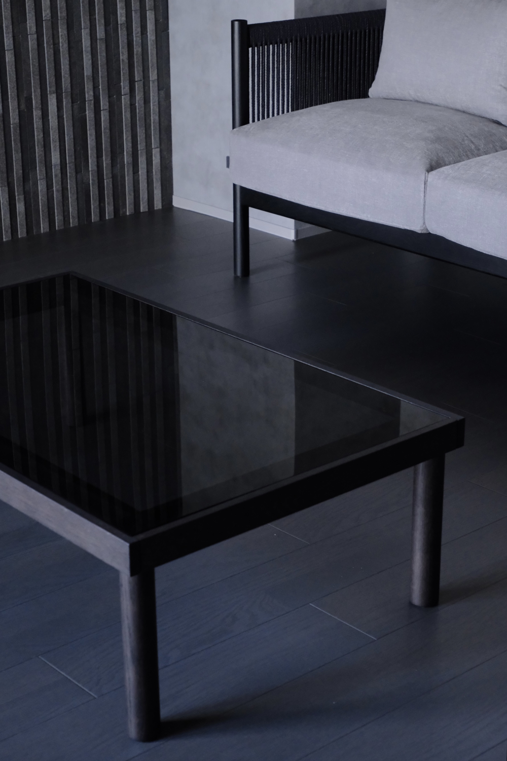 リビングには、彫刻的な美しさを持つブレイド ソファと、床に近い寛ぎを提案するザブ チェアを配し、ラウンジのように住まい手が自由に居場所を見つけられる空間に。また、ダイニングの主役であるラティス ラウンドテーブルは、円を描くように人々が集い、食卓を囲む豊かな時間を演出します。